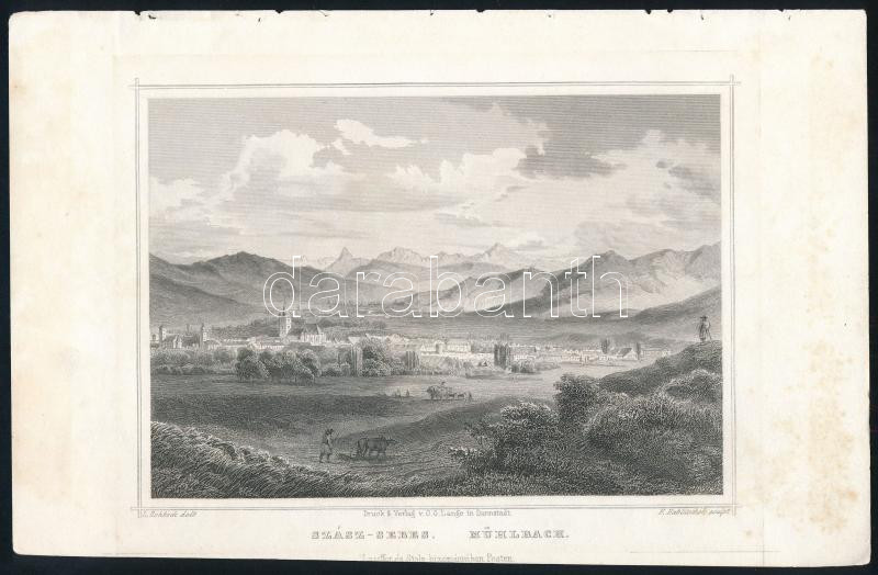 Ludwig Rohbock (1820-1883) - Franz Hablitschek (1824-1867): Szászsebes (Mühlbach, Sebes), Erdély. Acélmetszet, papír, jelzett a metszeten, apró lapszéli sérülésekkel, foltokkal, a lap alja vágott, 12x17 cm