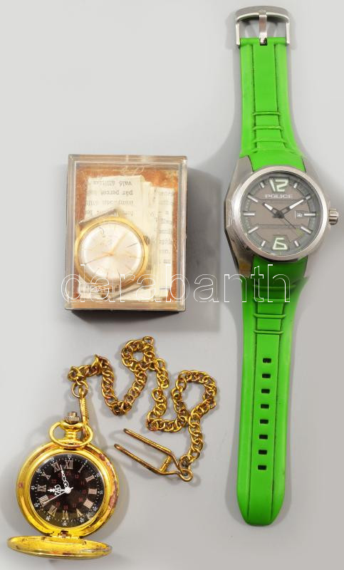 3 db régi óra: Police kvarc óra, működik, kaucsuk szíjjal. 46mm, + Pol... https://www.darabanth.com/de/506-Fernauktion/506.0/Kunst-Dokumente-andere-Sammelgebiete/Uhren~638/3-db-regi-ora-Police-kvarc-ora-mukodik-kaucsuk-szijjal-46mm-plus-Poljot-papirral-nem-mukC3~II3434796