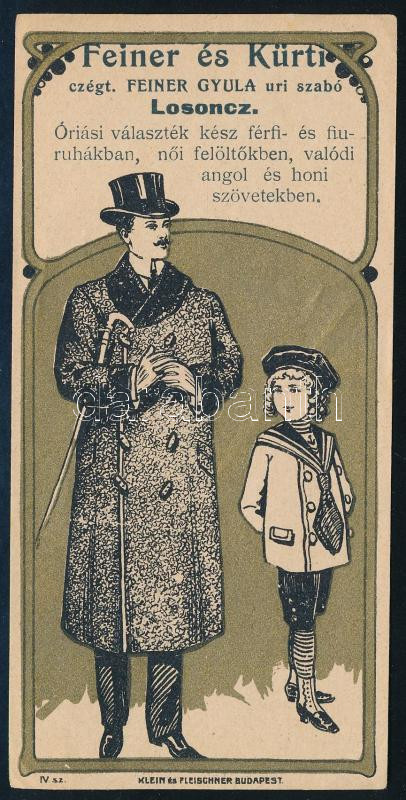 Feiner és Kürti úri szabó Losonc számolócédula https://www.darabanth.com/de/506-Fernauktion/506.0/Kunst-Dokumente-andere-Sammelgebiete/Werbungen~67/Feiner-es-Kurti-uri-szabo-Losonc-szamolocedula~II3433305