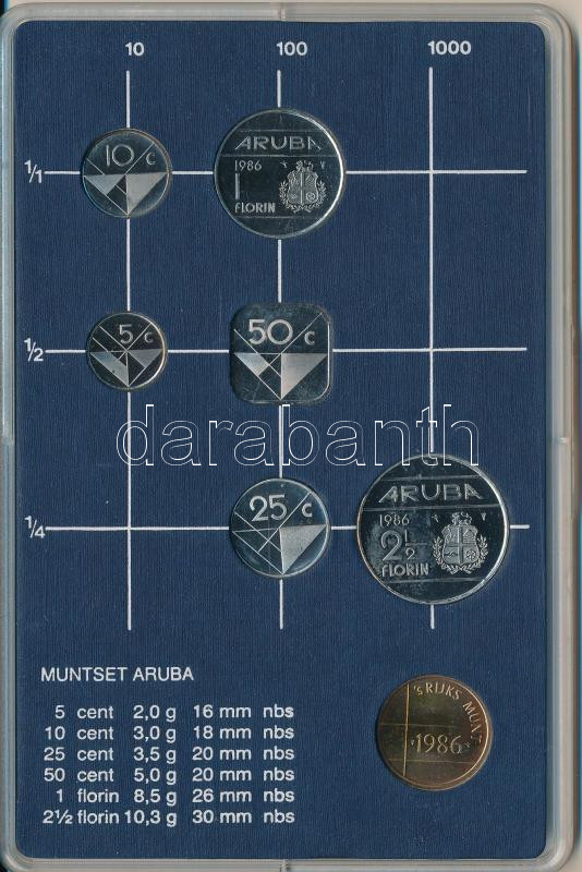 Aruba 1986. 5c - 2 1/2Fl (6xklf) forgalmi sor + "Aruba" zset... https://www.darabanth.com/de/506-Fernauktion/506.0/Numismatik/Auslandische-Kursmunzsatze~275/Aruba-1986-5c-2-12Fl-6xklf-forgalmi-sor-plus-3Cem3EAruba3Cem3E-zseton-szettben-muanyag-disztokb~II3429326