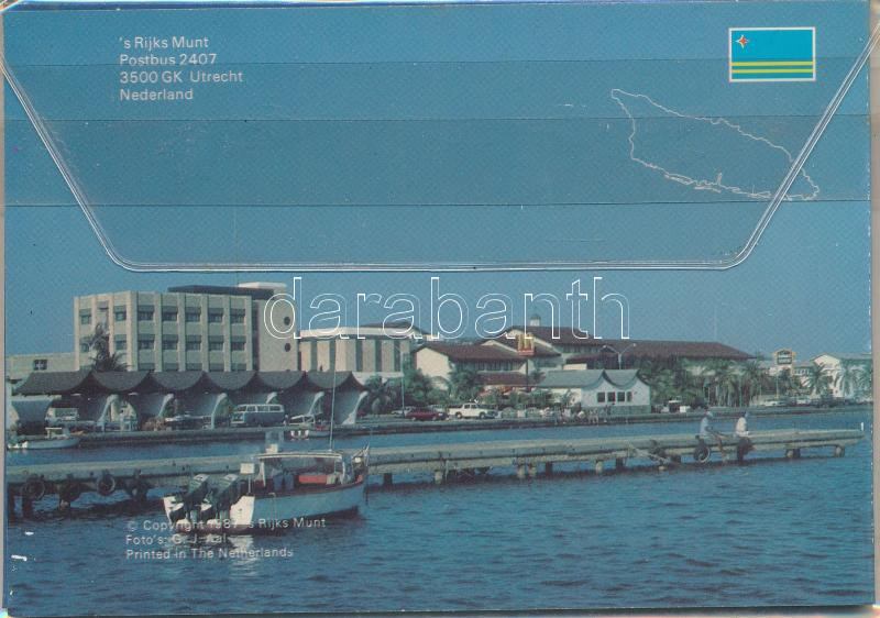Beschreibung: Aruba 1987. 5c - 2 1/2Fl (6xklf) forgalmi sor + "Aruba " zseton szettben, karton dísztokban T:UNC sérült tok