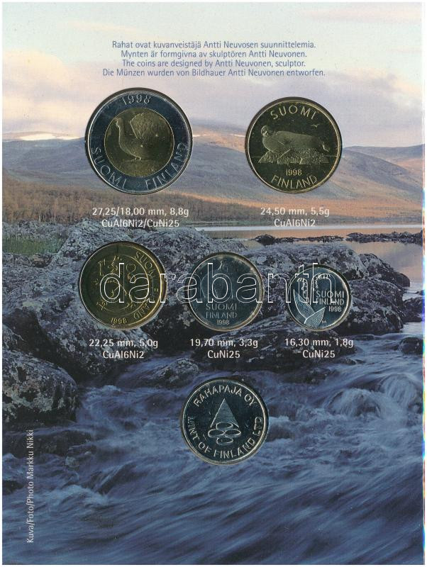 Finnország 1998. 10p - 10M (5xklf) forgalmi sor + "Finn verde / Allan Alarik Soiniemi" Cu-Ni zseton szettben, karton dísztokban T:UNC