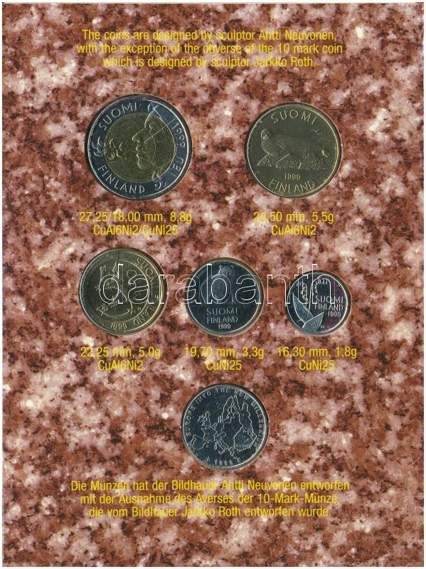 Finnország 1999. 10p - 10M (5xklf) forgalmi sor + "Európa az új évezredben" Cu-Ni zseton szettben, karton dísztokban T:UNC