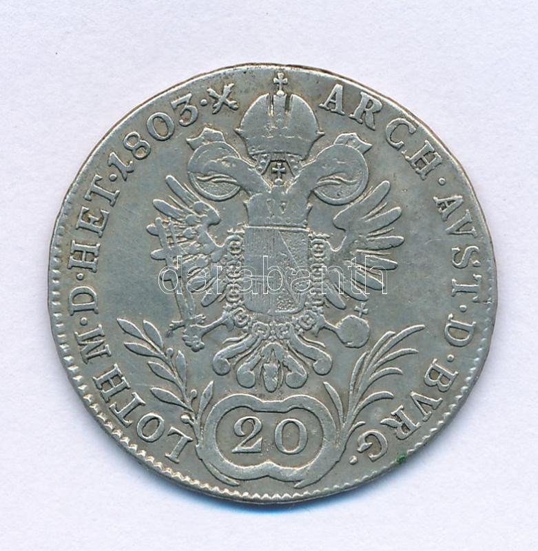 Austri... https://www.darabanth.com/de/506-Fernauktion/506.0/Numismatik/Numismatische-losen-zu-gunstigen-rufpreisen~259/Ausztria-1803A-20kr-Ag-II-Ferenc-Becs-6-52g-TF3Cbr-3E-Austria-1803A-20-Kreuzers-Ag-Franz-II~II3431532