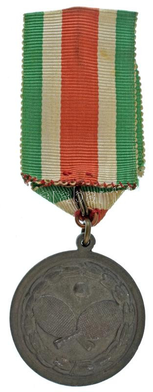 1948. "Népi Bajnok" Zn asztalitenisz díjérem zománcozott "Petőfi" rátéttel az 1848-1849-es forradalom 100. évfordulója alkalmából, nemzetiszín mellszalagon, zománcozott "Munkára kész!" felirattal (36mm) T:XF