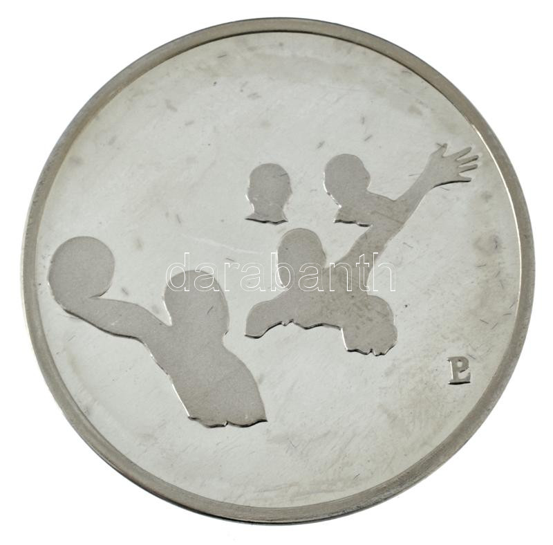 1990. "Magyar Csapat 1992 - CITIVS, ALTIVS, FORTIVS / Vízilabda" a Barcelonában rendezett nyári Olimpia alkalmából készült, jelzetlen Ag emlékérem kapszulában, sorszámozott "1966" tanúsítvánnyal, eredeti dísztokban. Szign.: Papp László (1947-) (31,5g/0,925/42,5mm) T:UNC (eredetileg PP) patina