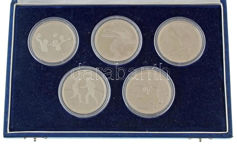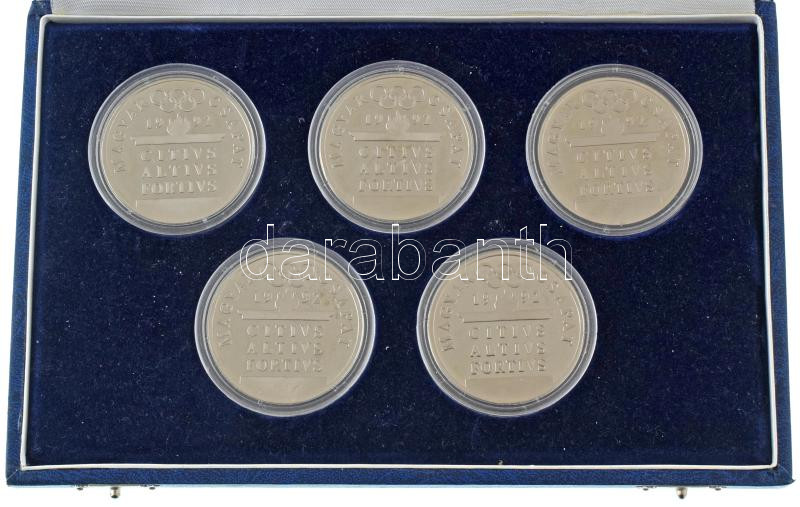 1990. "Magyar Csapat 1992 - CITIVS, ALTIVS, FORTIVS" a Barcelonában rendezett nyári Olimpia alkalmából készült, 5db-os, jelzetlen Ag emlékérem szett dísztokban, mindegyik érem kapszulában. Szign.: Papp László (1947-) (~31g/0.925/42,5mm) T:AU (eredetileg PP) folt