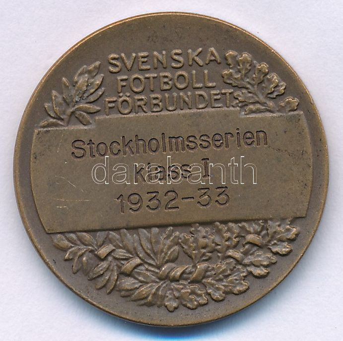 Svédország 1933. "Svéd Labdarúgó Szövetség / Stockholmi sorozat I. osztály 1932-33" kétoldalas bronz díjérem (27,5mm) T:AU