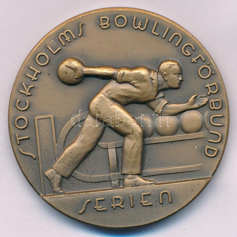 Svédország 1947. "Stockholmi Bowling Szövetségi Bajnokság / Győztes a DIV. IIA-ban" kétoldalas bronz díjérem, hátoldalán "BHE" gyártói jelzéssel (45mm) T:AU