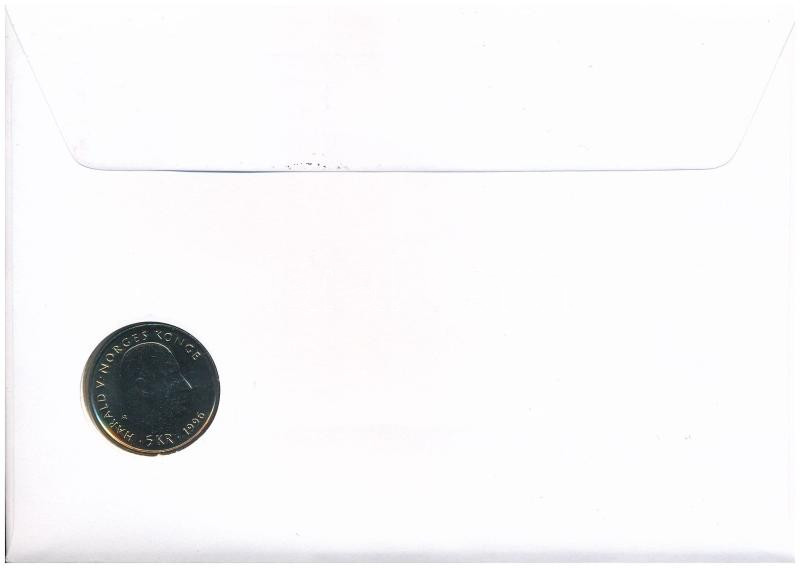 Norway 1996. 5 Kroner Cu-Ni "100th Anniversary of Return of Nansen from the Arctic" in numbered "150 arsmarkering: Pofrarer Otto Sverdrup 1854-2004" envelope, with stamp and cancellation (3456/8000) C:UNC