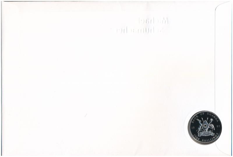 Uganda 1997. 1000Sch multicolor Cu-Ni "Michael Schumacher" in coin envelope with stamp and cancellations, with German description C:UNC