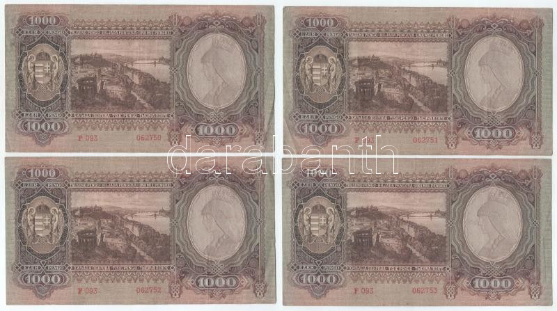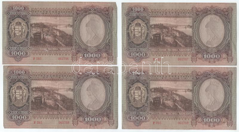 1943. 1000P (8x) sorszámkövetők "F 093 062746 - F 093 062753"... https://www.darabanth.com/de/506-Fernauktion/506.0/Numismatik/Ungarische-Banknoten~266/1943-1000P-8x-sorszamkovetok-F-093-062746-F-093-062753-TF3Cbr-3E-Adamo-P21~II3426376