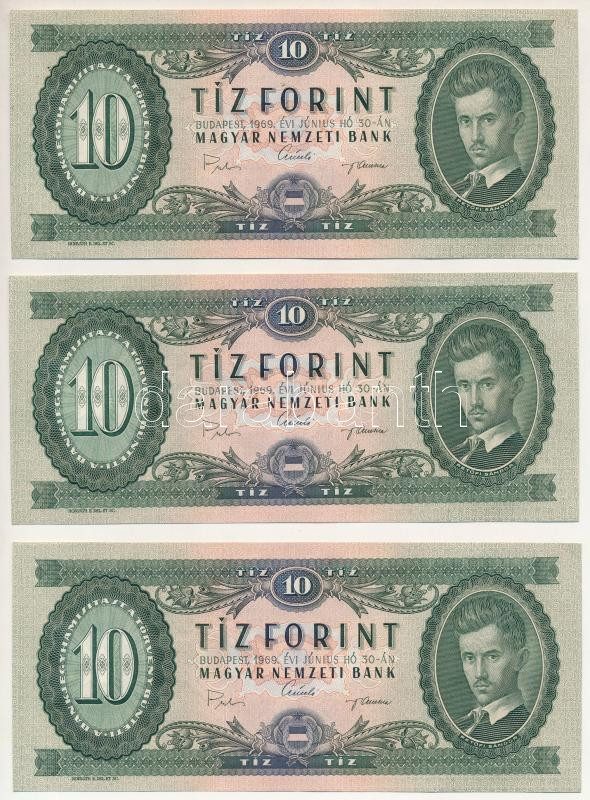 Beschreibung: 1969. 10Ft (3x) sorszámkövetők "A 076 150011 - A 076 150013" T:F szép papír