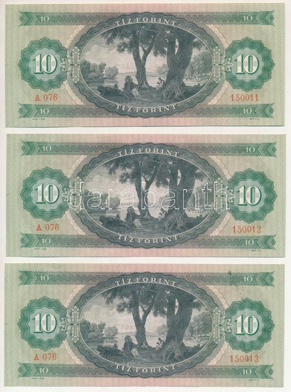 1969. 10Ft (3x) sorszámkövetők "A 076 150011 - A 076 150013"... https://www.darabanth.com/de/506-Fernauktion/506.0/Numismatik/Ungarische-Banknoten~266/1969-10Ft-3x-sorszamkovetok-A-076-150011-A-076-150013-TF-szep-papir3Cbr-3E-Adamo-F7~II3430806