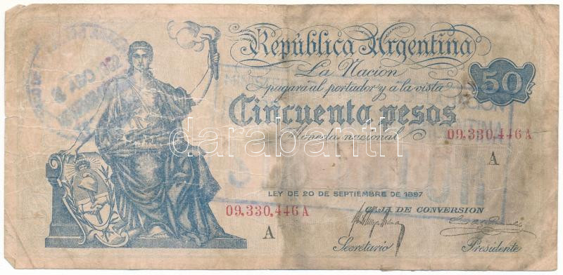 Argentína DN(1912-1920) 50P kiolvashatatlan felülbélyegzéssel, "0... https://www.darabanth.com/de/506-Fernauktion/506.0/Numismatik/Weltweit-Banknoten~273/Argentina-DN1912-1920-50P-kiolvashatatlan-felulbelyegzessel-09-330-446-A-TVG3Cbr-3E-Argent~II3426533