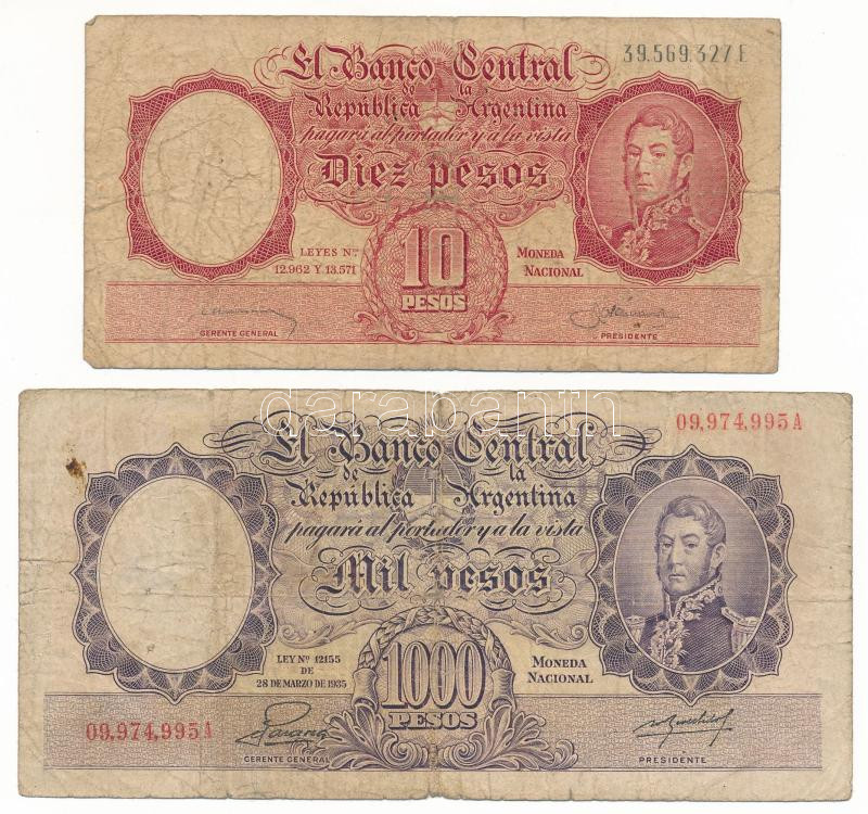 Argentína DN(1952-1955) 1000P + DN(1958-1959) 10P T:VG,G