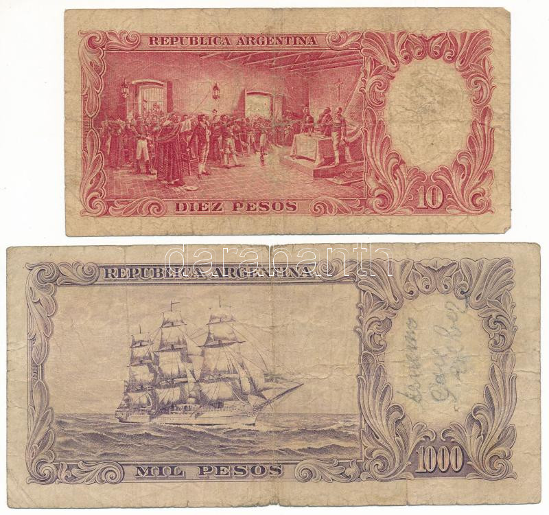 Beschreibung: Argentína DN(1952-1955) 1000P + DN(1958-1959) 10P T:VG,G