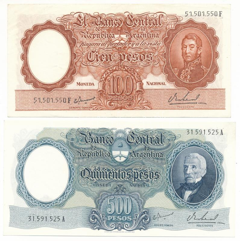 Argentína DN(1967-1969) 100P + 500P T:XF, F szép papír