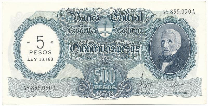Argentína DN(1969-1971) 5P (500P felülbélyegzett ideiglenes kiadás) T:F, szép papír