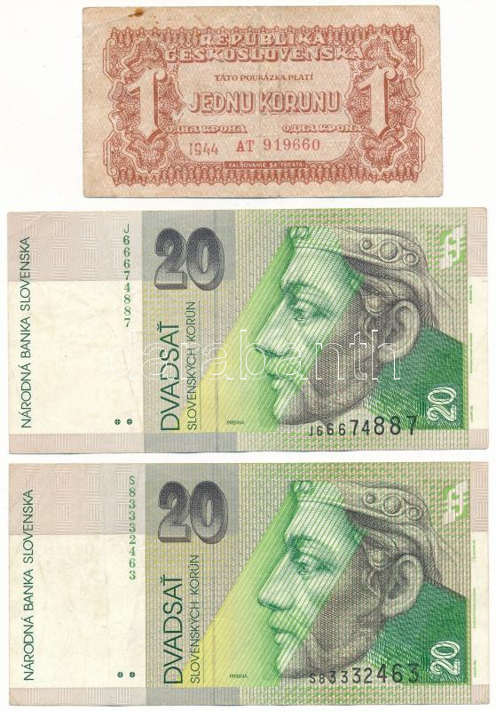 Beschreibung: Csehszlovákia 1944. 1K + Szlovákia 2001-2004. 20K (2xklf) T:F,VG