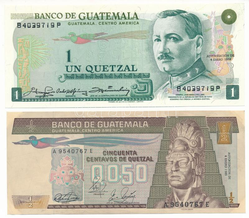 Guatemala 1978. 1 Quetzal + 1989. 1/2 Quetzal C:AU,VF