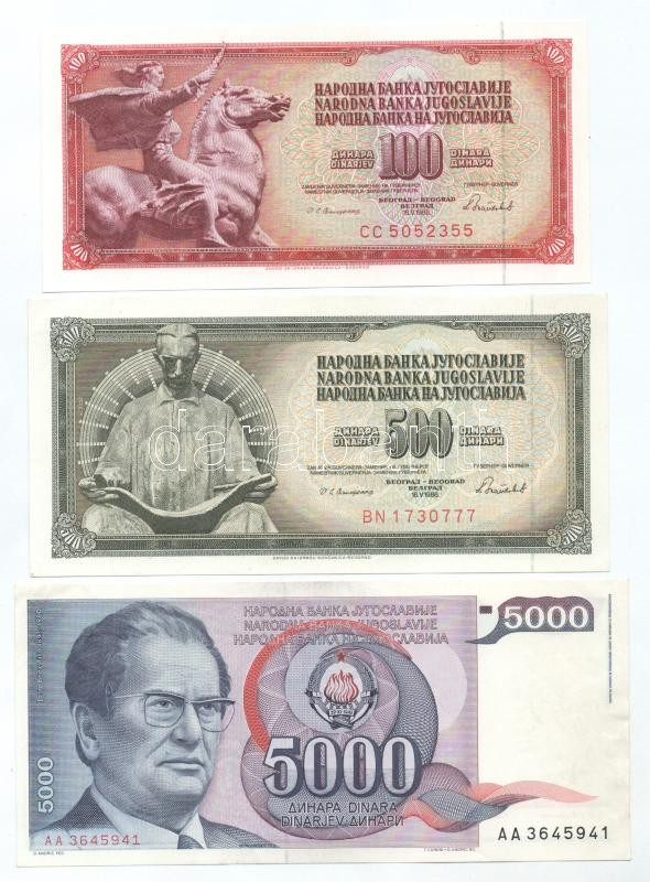 Jugoszlávia 1986. 100D + 500D + 1985. 5000D + 1987. 20.000D + 1988. 50... https://www.darabanth.com/de/506-Fernauktion/506.0/Numismatik/Weltweit-Banknoten~273/Jugoszlavia-1986-100D-plus-500D-plus-1985-5000D-plus-1987-20000D-plus-1988-50000D-plus-1989-100000D-plus-100~II3432797