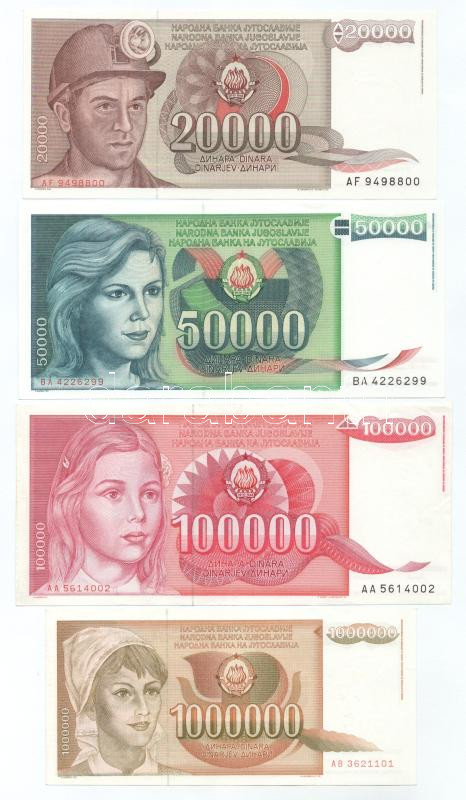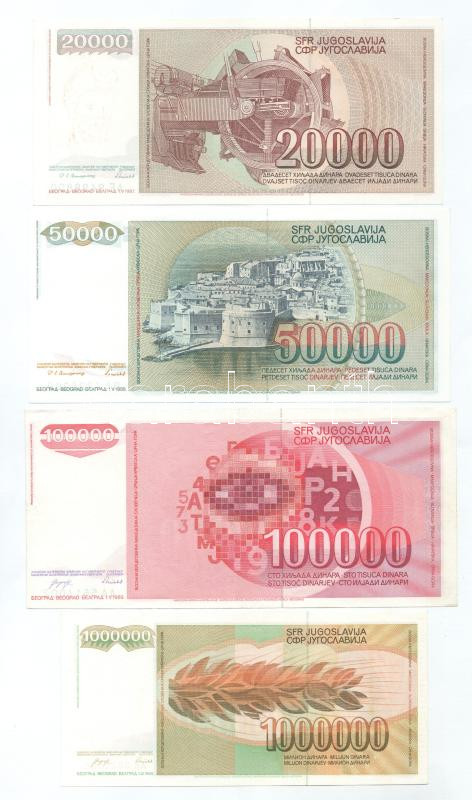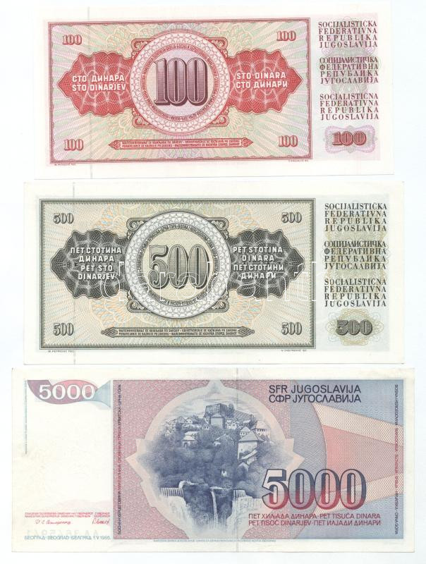 Beschreibung: Jugoszlávia 1986. 100D + 500D + 1985. 5000D + 1987. 20.000D + 1988. 50.000D + 1989. 100.000D + 1.000.000D T:AU, közte 2db XF,VF
