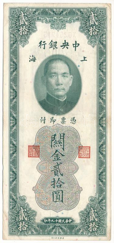 China 1930. 20 Custons Gol... https://www.darabanth.com/de/506-Fernauktion/506.0/Numismatik/Weltweit-Banknoten~273/Kina-1930-20CGU-XG-254715-TF3Cbr-3E-China-1930-20-Custons-Gold-Units-XG-254715-CF3Cbr-3E-Kr~II3433468