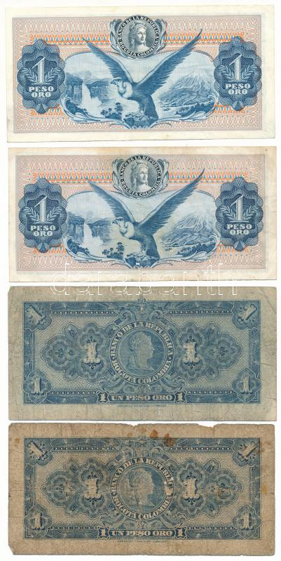 Colombia 1950-1954. 1 Peso Oro (2xdiff) + 1966-1967. 1 Peso Oro (2xdiff) C:F fine paper-G