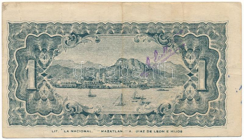Mexikói államok / Sonora / Guaymas 1914. 1P "La Tesorería de la Federación" helyipénz "B 60522" T:F, szép papír