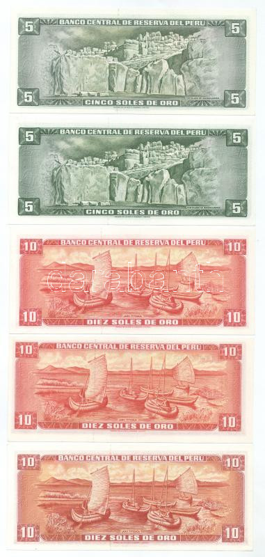 Peru 1973-1974. 5 Soles de Oro (2xdiff) + 1973-1976. 10 Soles de Oro (3xdiff) C:AU