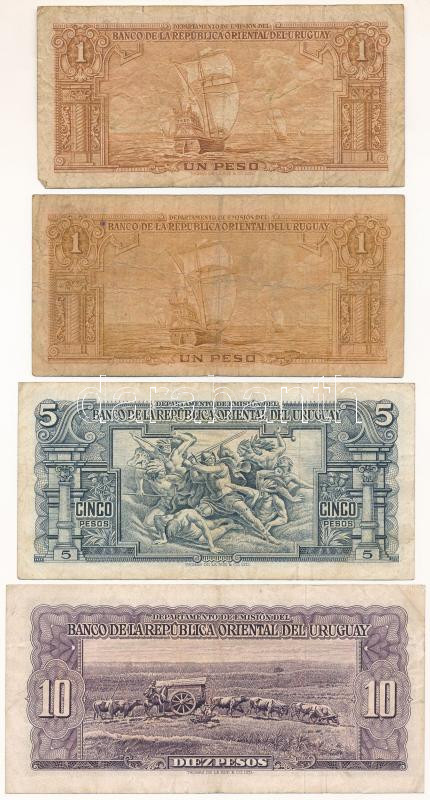 Uruguay ND(1948) 1 Peso (2xdiff) + 5 Pesos + 10 Pesos C:F,VG