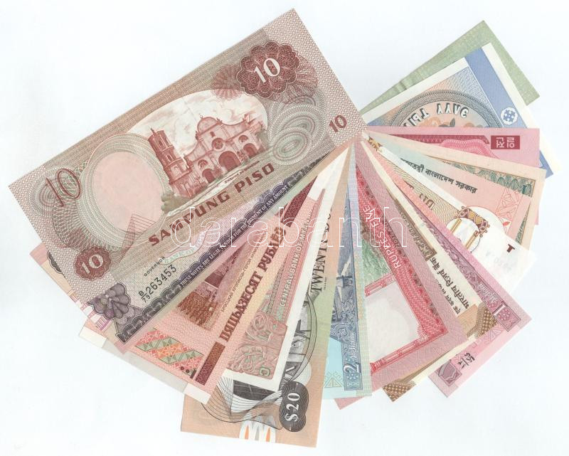 Vegyes, 15db-os külföldi bankjegy tétel, közte India, Korea, Nepál, stb. T:UNC,AU, közte egy XF és egy F