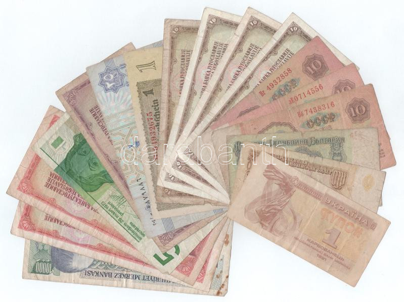 Vegyes, 17db-os külföldi bankjegy tétel, közte Hollandia 1973. 5G + Jugoszlávia 1978-1986. 10D - 100D (3xklf, 7db), stb. T:F,VG