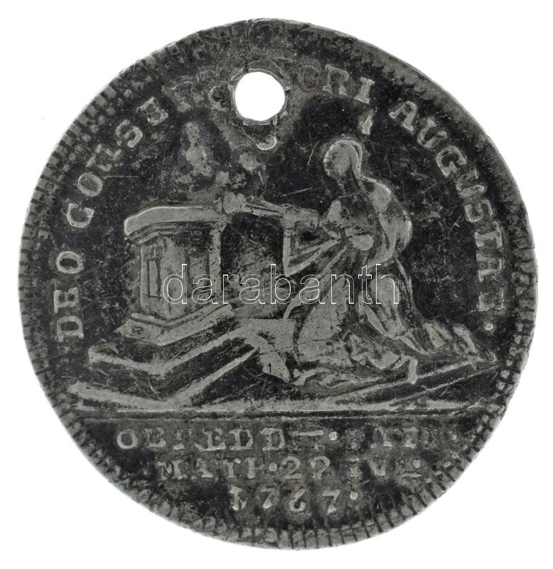 Ausztria 1767. "IMP. HU. BO. REG M. THERES D.G.R. / DEO CONSERVATORI AUGUSTAE" kétoldalas Ag emlékérem Mária Terézia felgyógyulásának emlékére (1,85g/21,5mm) T:VF, patina, hullámos lemez, lyukasztott