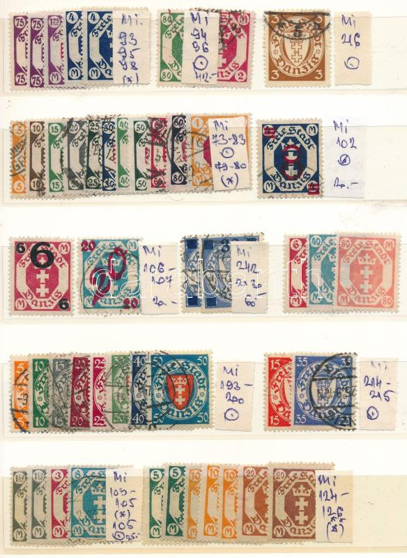 1921 Összeállítás Mi 79-216 értékekből, közepes berakólapon https://www.darabanth.com/de/506-Fernauktion/506.0/Philatelie-und-Postgeschichte-Ausland/Deutschland-Danzig~468/1921-Osszeallitas-Mi-79-216-ertekekbol-kozepes-berakolapon~II3432141