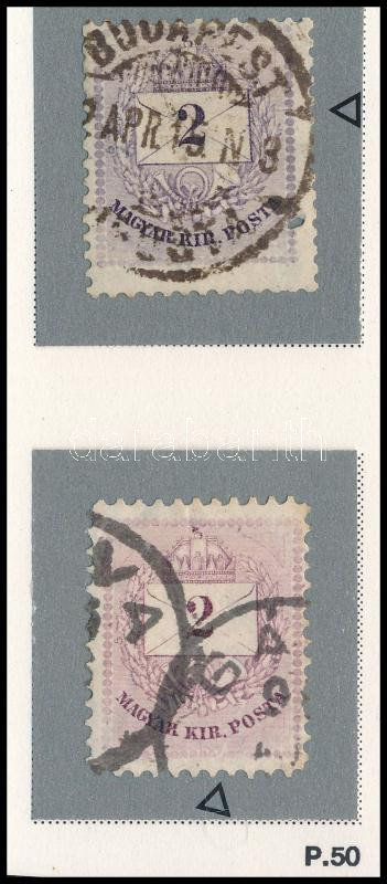 Beschreibung: 1881 2 db Színesszámú 2kr II. típus klf vésetjavításokkal, nagyon ritkák (ex Orbán, Sebestyén aranyérmes kiállítási anyagából)