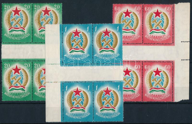 1949 Alkotmány (I.) sor ívközéprészes négyestömbökben https://www.darabanth.com/de/506-Fernauktion/506.0/Philatelie-und-Postgeschichte-Ungarn/Ausgaben-1946-1956~51/1949-Alkotmany-I-sor-ivkozepreszes-negyestombokben~II3426773