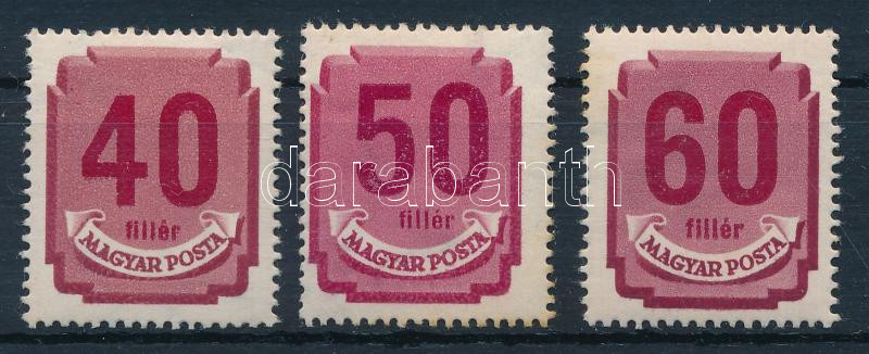 Beschreibung: 1950 Forint-filléres portó 3 klf érték számvízjellel (rozsda / stain)