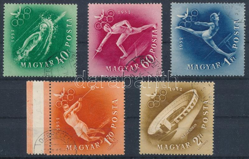 1952 Olimpia 5 klf bélyeg számvízjellel https://www.darabanth.com/de/506-Fernauktion/506.0/Philatelie-und-Postgeschichte-Ungarn/Ausgaben-1946-1956~51/1952-Olimpia-5-klf-belyeg-szamvizjellel~II3434698