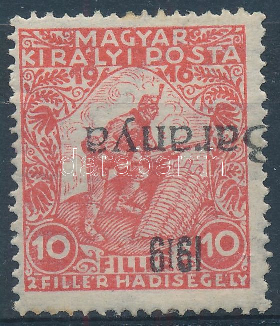 Baranya 1919 Hadisegély III. 10f fordított felülnyomattal, Bodor vizsg... https://www.darabanth.com/de/506-Fernauktion/506.0/Philatelie-und-Postgeschichte-Ungarn/Besetzung-und-Lokalausgabe-1919-1921-mit-Obligo~45/Baranya-1919-Hadisegely-III-10f-forditott-felulnyomattal-Bodor-vizsgalojellel~II3428559
