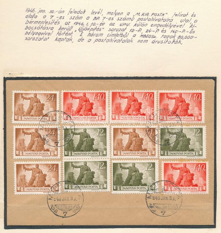 Beschreibung: 1946 (6. díjszabás) Borítékon 12 db Újjáépítés bélyeg "M.KIR.POSTA 7" bélyegzéssel
