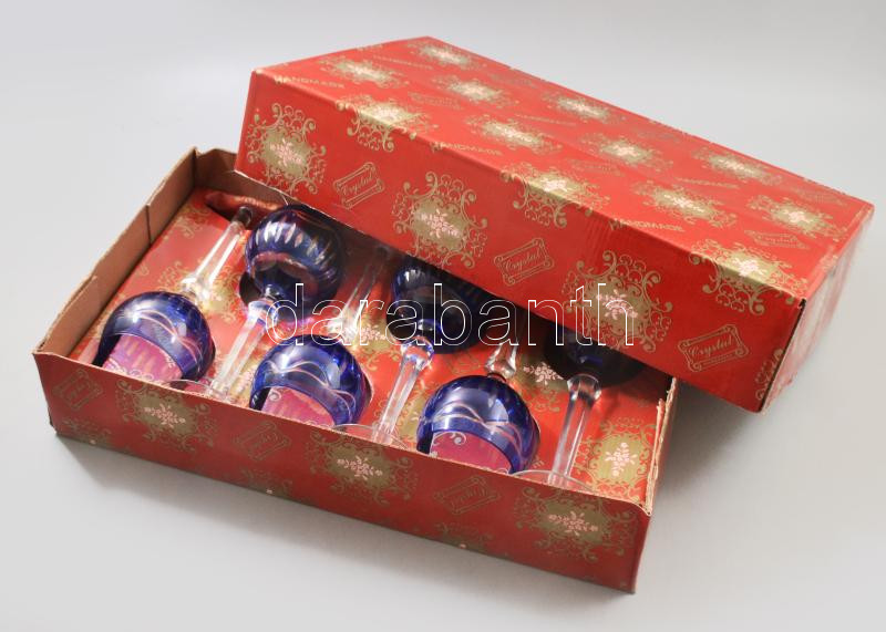 Beschreibung: Dúsan csiszolt kristály kék borospohár szett, 6 darab, original dobozban, hibátlan, m: 21 cm