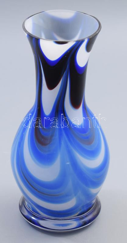 Kék üveg váza. Formába öntött, anyagában színezett, hibátalan. 23 cm https://www.darabanth.com/de/506-Fernauktion/506.0/Porzellan-Keramik-Glass/Glaser~633/Kek-uveg-vaza-Formaba-ontott-anyagaban-szinezett-hibatalan-23-cm~II3298091