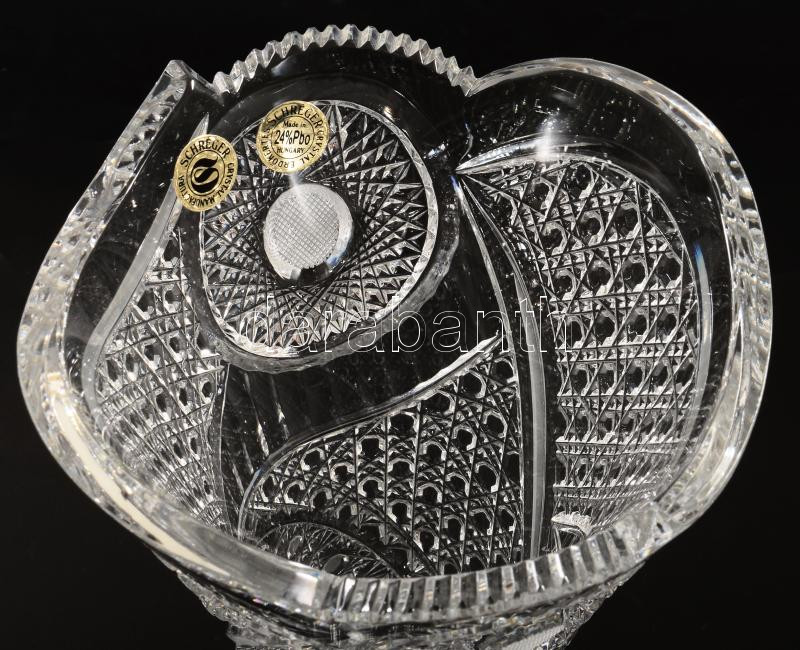 Beschreibung: Schréger Erdőkertes ólomkristály váza, iparművész munka gazdag csiszolással, hibátlan, címkével jelzett, m: 25,5 cm