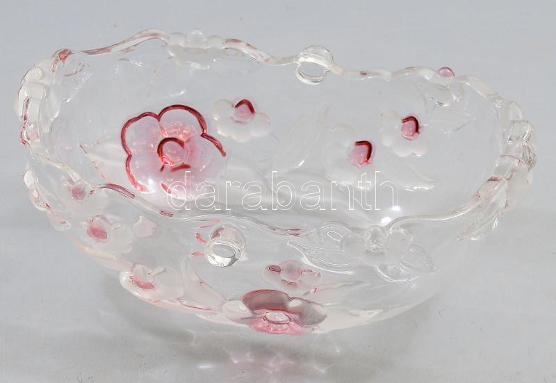 Beschreibung: Virágmintás kristály kínáló, pácolt részekkel, 20x16 cm