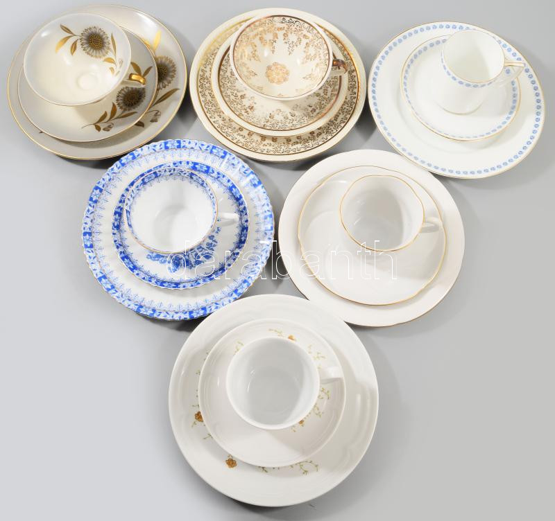 Beschreibung: 6 darab porcelán reggeliző szett: csésze alátéttel és desszertes tányér. Jelzett, minimális kopással, közte ritkább készletekkel.