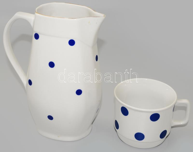Beschreibung: Alföldi kékpöttyös kancsó + Zsolnay kékpöttyös bögre, jelzett, m: 20 cm