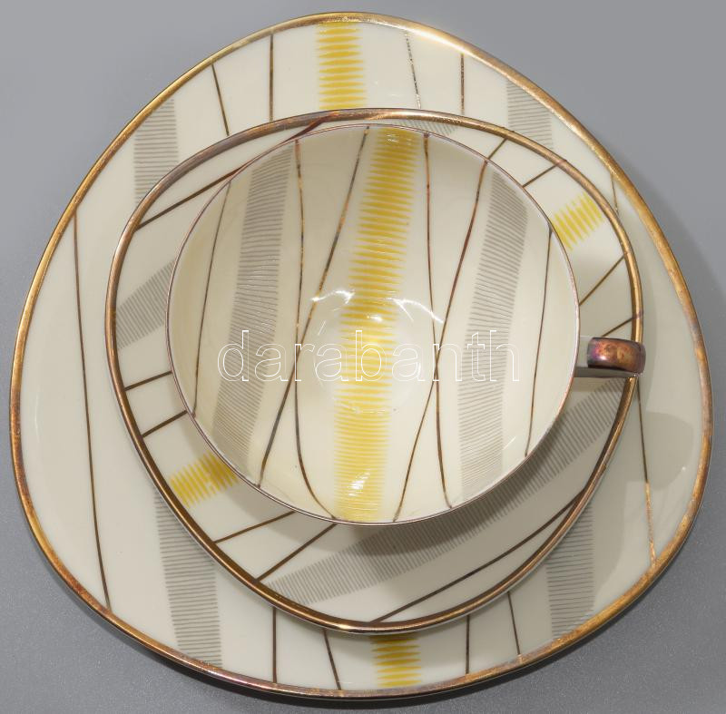 Beschreibung: Bavaria mid-century egyszemélyes reggeliző szett, csésze alátéttel és desszertes tányér. Jelzett, minimális kopással, d: 19,5 cm