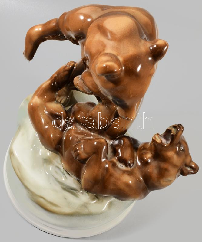 Beschreibung: Zsolnay birkózó medvék. Kézzel festett, jelzett, terv.: Markup Béla. Hibátlan, m: 30 cm